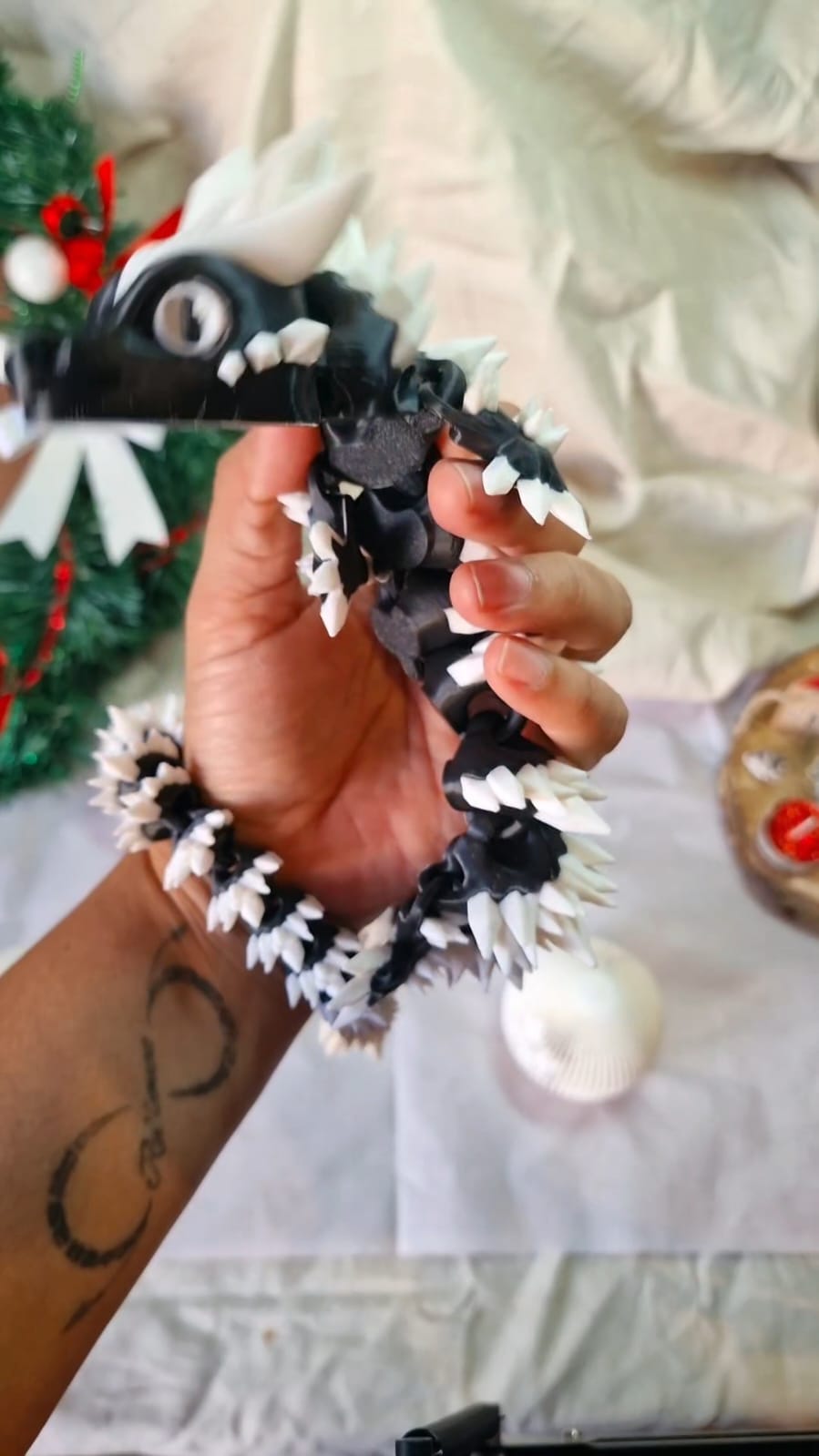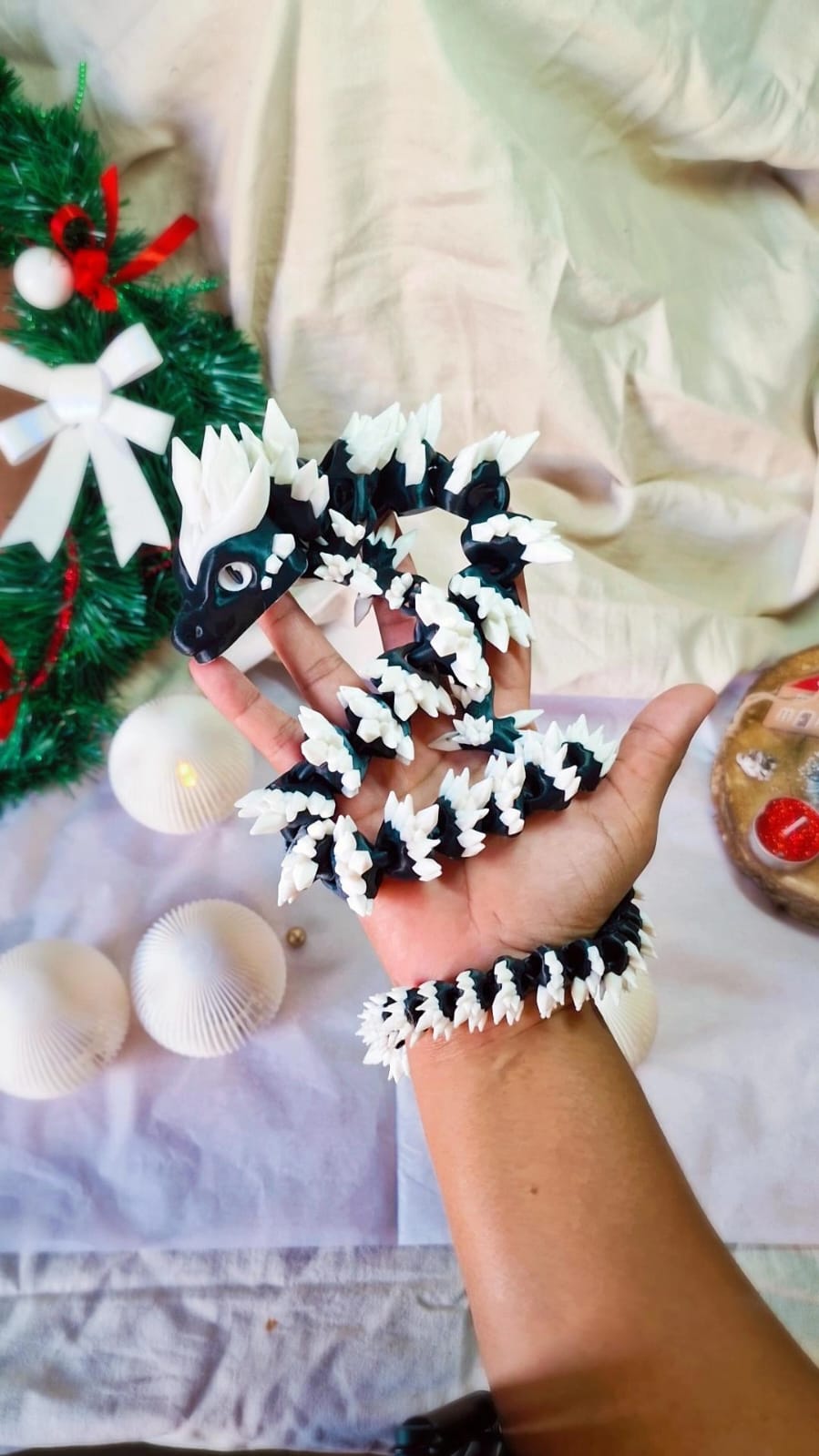Dragon Articulé 3D – Noir & Blanc – Grand Modèle ~50 cm – Création Atelier MARS