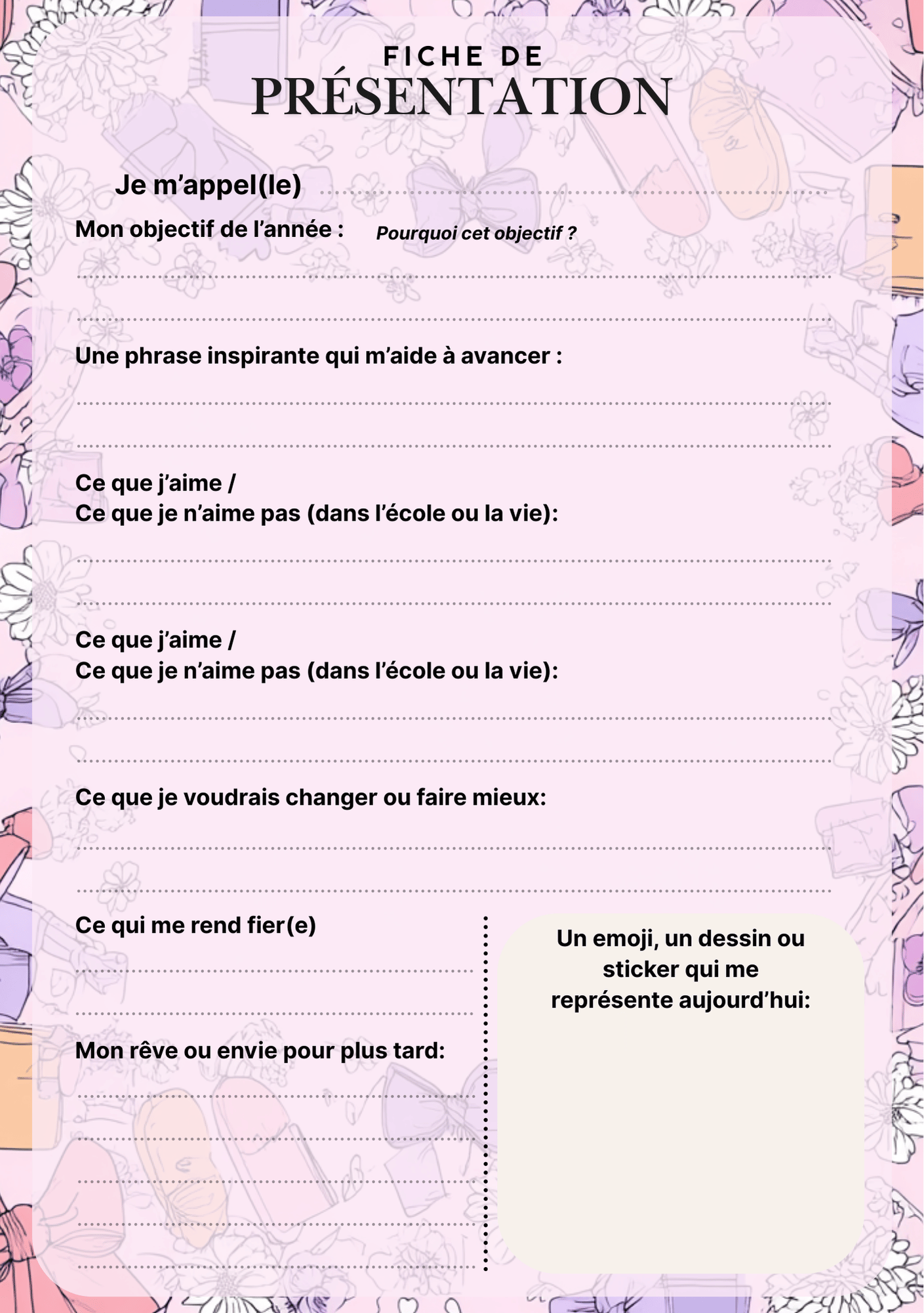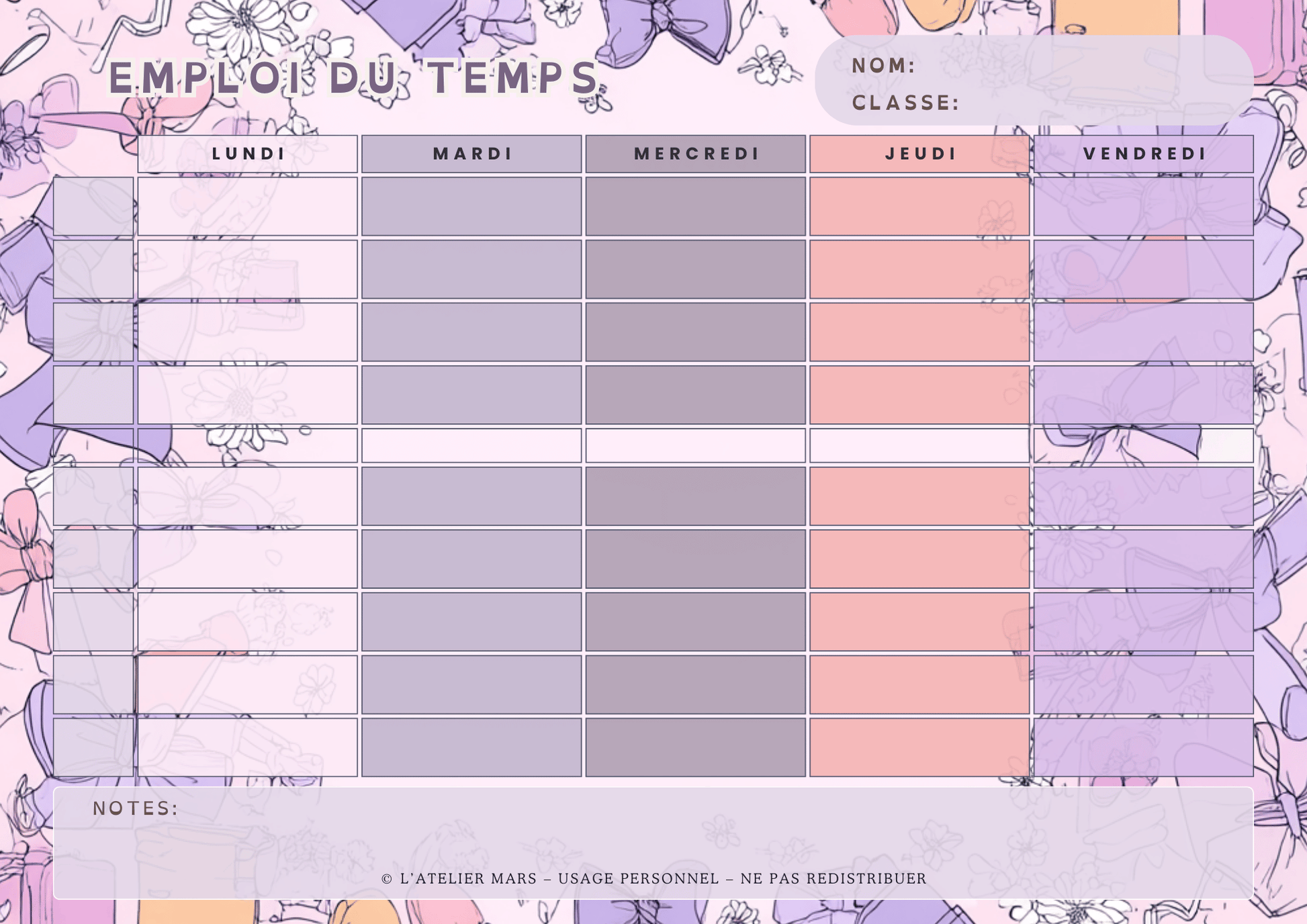 Emploi du temps scolaire – Girly (PDF à imprimer ou imprimé & envoyé)