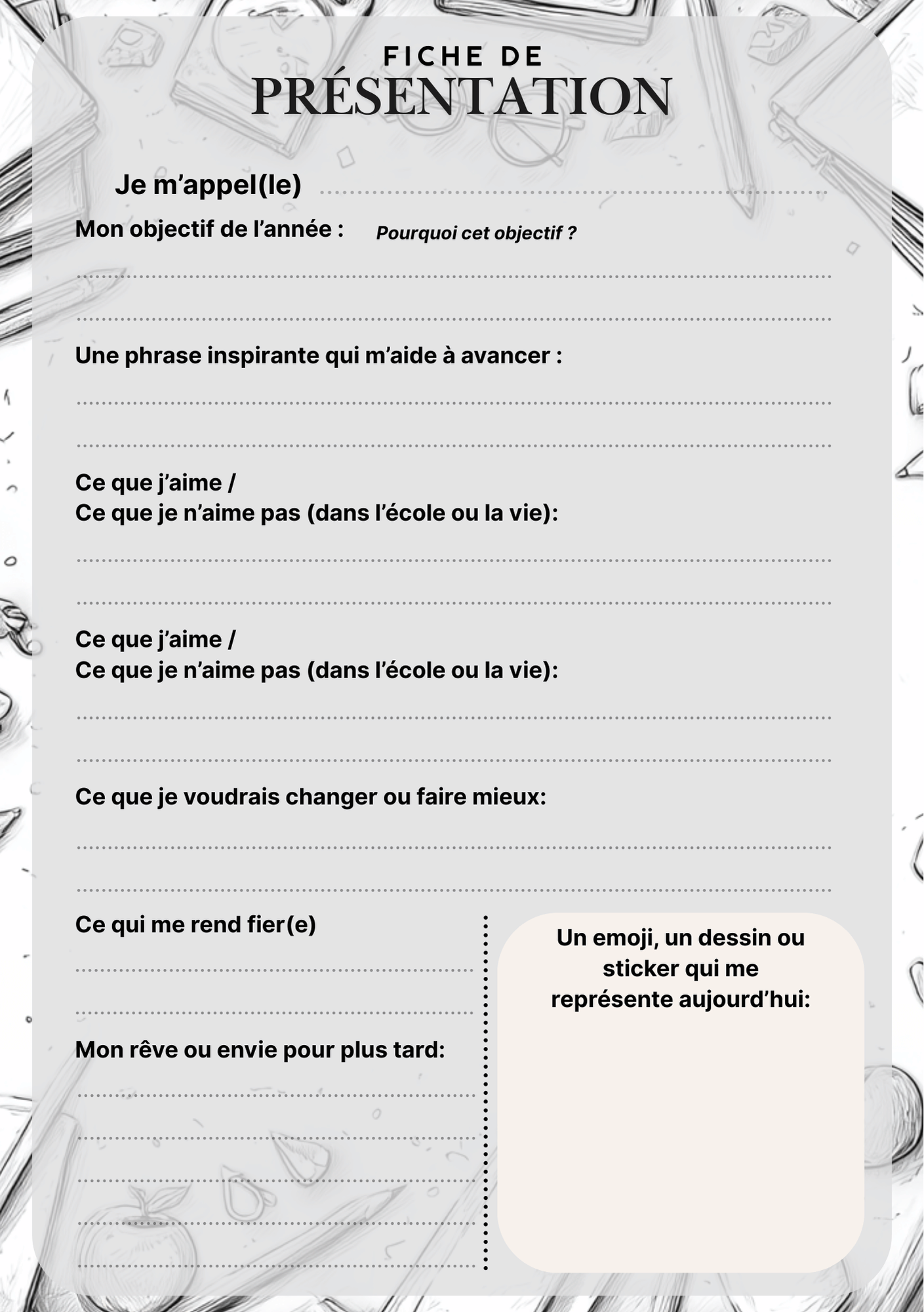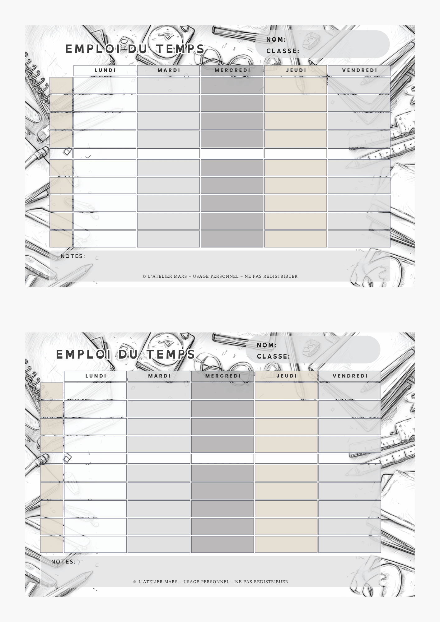 Emploi du temps scolaire – Noir & Blanc (PDF à imprimer ou imprimé & envoyé)