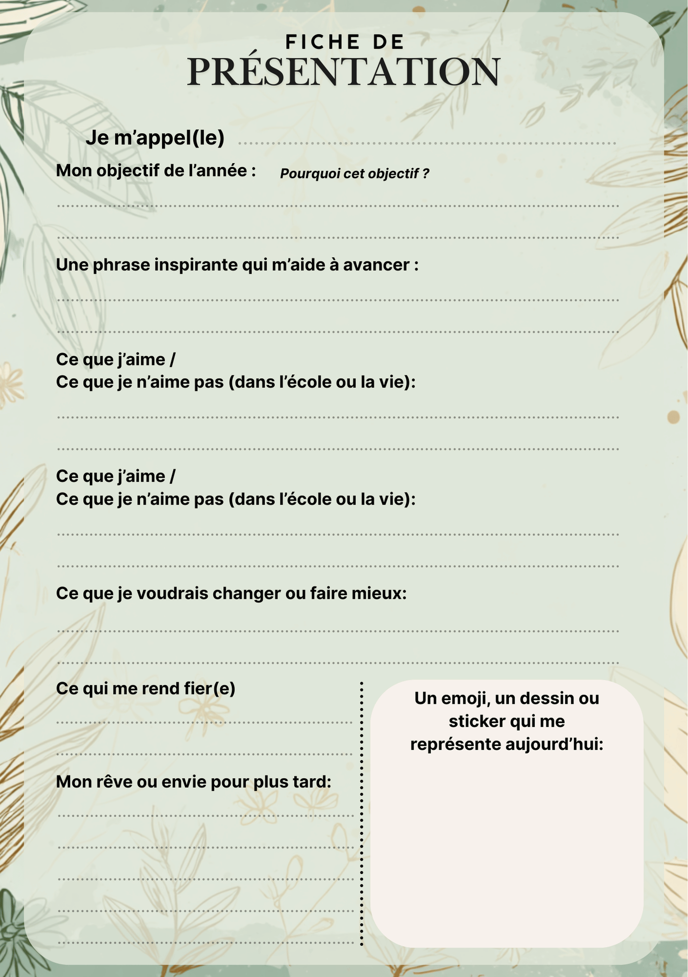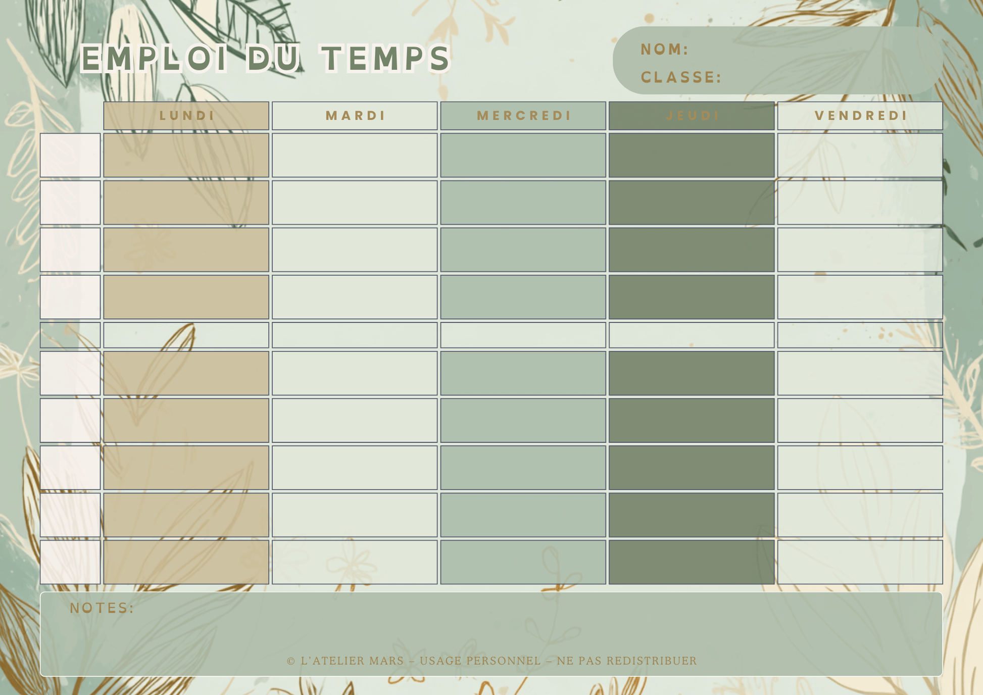 Emploi du temps scolaire – Végétal (PDF à imprimer ou imprimé & envoyé)
