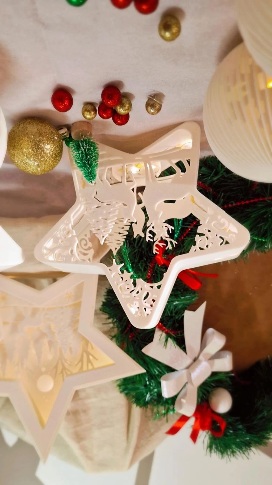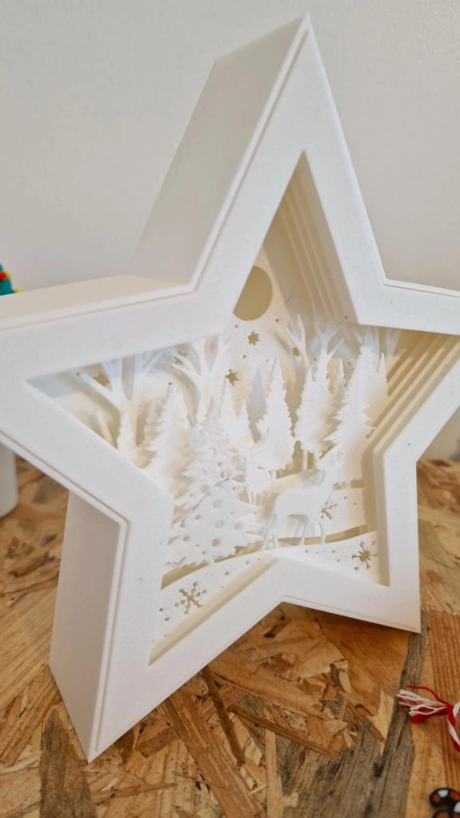 Lampe LED 3D de Noël – Étoile Forêt / Étoile Multicouche Cerf / Étoile Père Noël – Atelier MARS