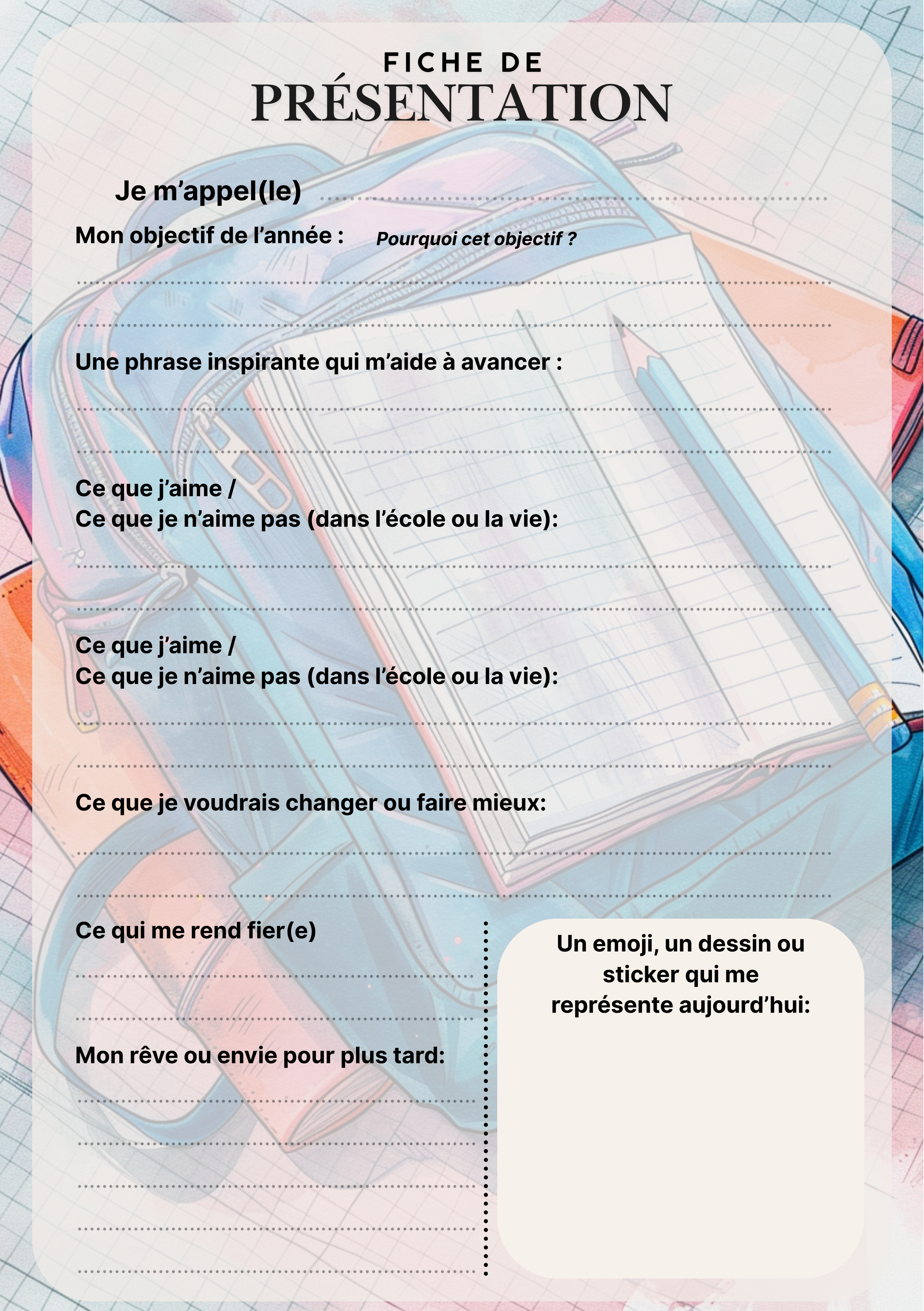 ✏️ Le pack est livré prêt à imprimer, mais vous pouvez écrire le prénom et les informations de l’élève à la main après impression.